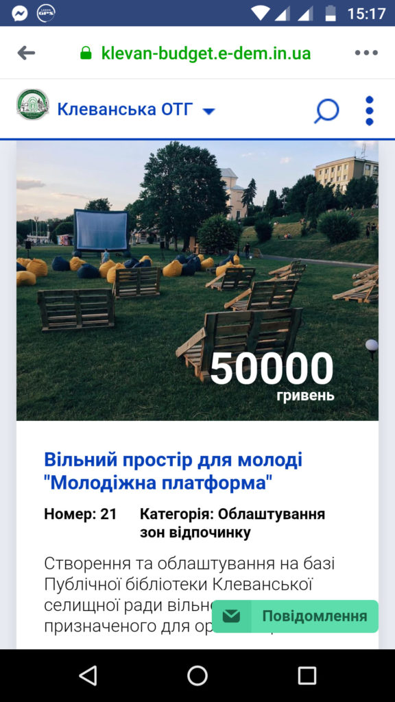 посиланням https://klevan-budget.e-dem.in.ua/#/project/7345?return=main