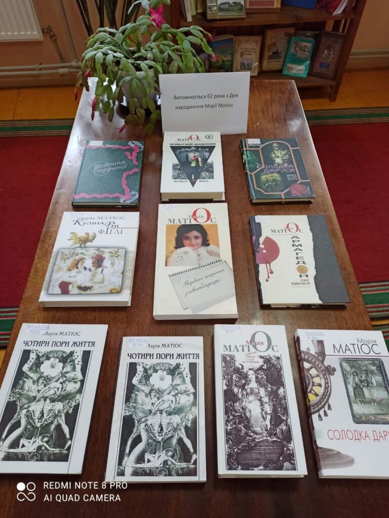 З нагоди Дня народження Марії Матіос – однієї з найпопулярніших письменниць сьогодення у відділі обслуговування користувачів смт Оржів Комунального закладу “Публічна бібліотека” Клеванської селищної ради з 17 по 24 грудня діє виставка художніх творів авторки. Запрошуємо ознайомитись з книгами, які в наш час є яскравим літературним явищем.