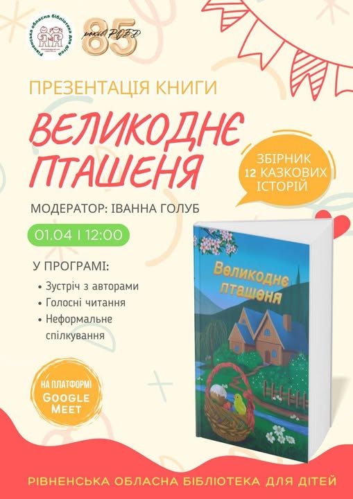Подія розпочнеться 1 квітня о 12.00 год в Рівненській обласній бібліотеці для дітей.Приєднуйтесь до презентації на платформі Google Meet за посиланням: https://meet.google.com/vzj-sssu-qng