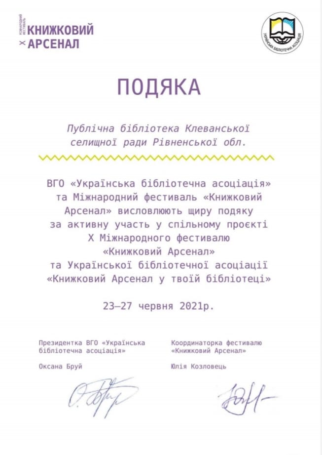 Публічна бібліотека Клеванської селищної ради приєдналась до прямого ефіру, орагнізатором якого став відділ дитячої літератури видавництва “Ранок”. Ефір був присвячений розповідям про найкращі та найцікавіші видання, які видавництво “Ранок” представив у програмі закупівлі книжок для бібліотек Українським інститутом книги.