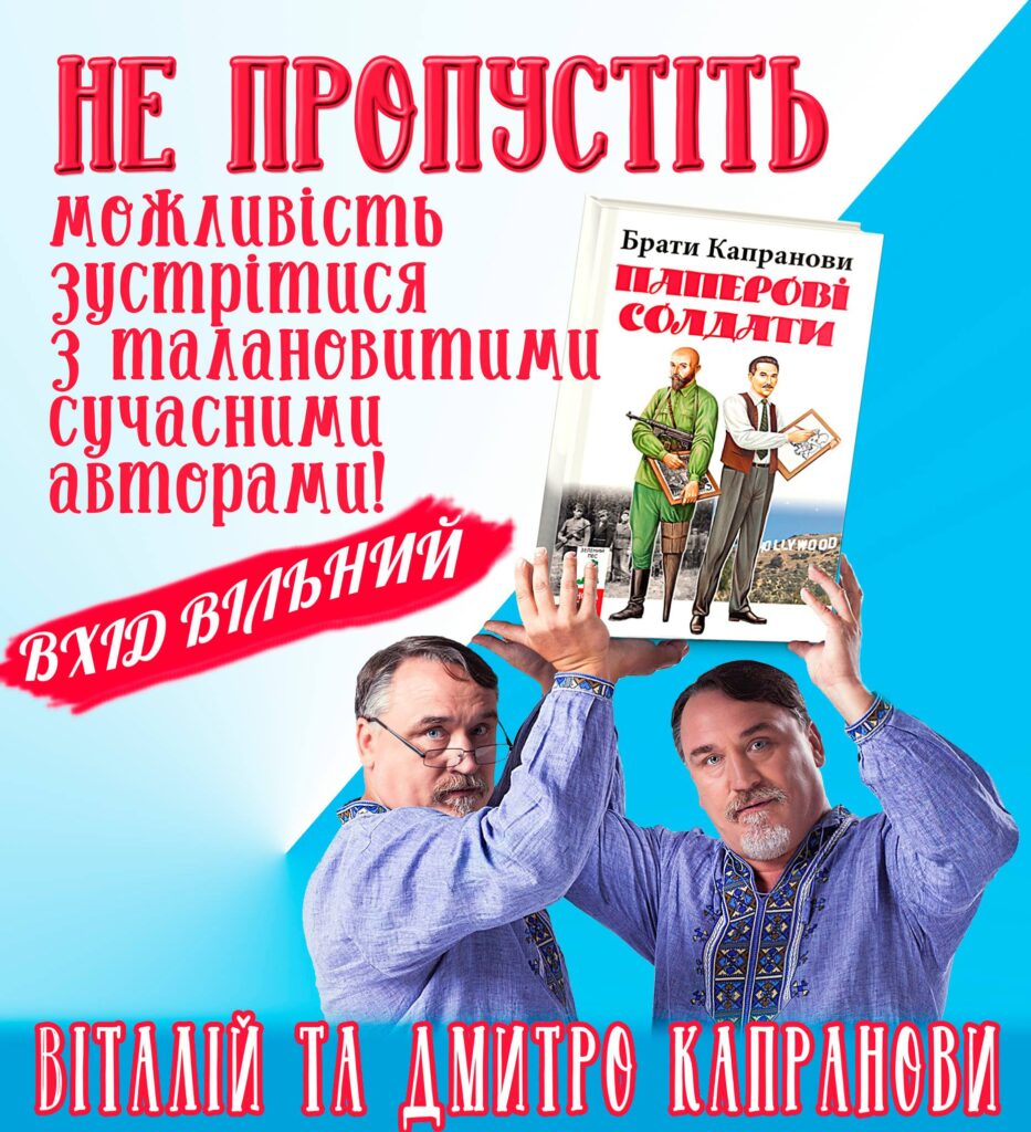 Дмитро та Віталій Капранови — українські письменники, видавці, публіцисти, громадські діячі, блогери. Фундатори видавництва «Зелений пес», ведучі та автори історичного YouTube каналу «ім. Т. Г. Шевченка». Популяризують українську культуру, історію та літературу. Їх дуже цікаво, приємно та просто слухати, вони освідчені, щирі, дотепні і душевні люди, легко та доступно подають інформацію, а відео на YouTube дивляться мільйони. Відгук нашого користувача про книгу “Паперові солдати”: “Ця книга прям розпалила колишній азарт до читання, читав на одному подиху, таке відчуття було, що ніби біля них”.
