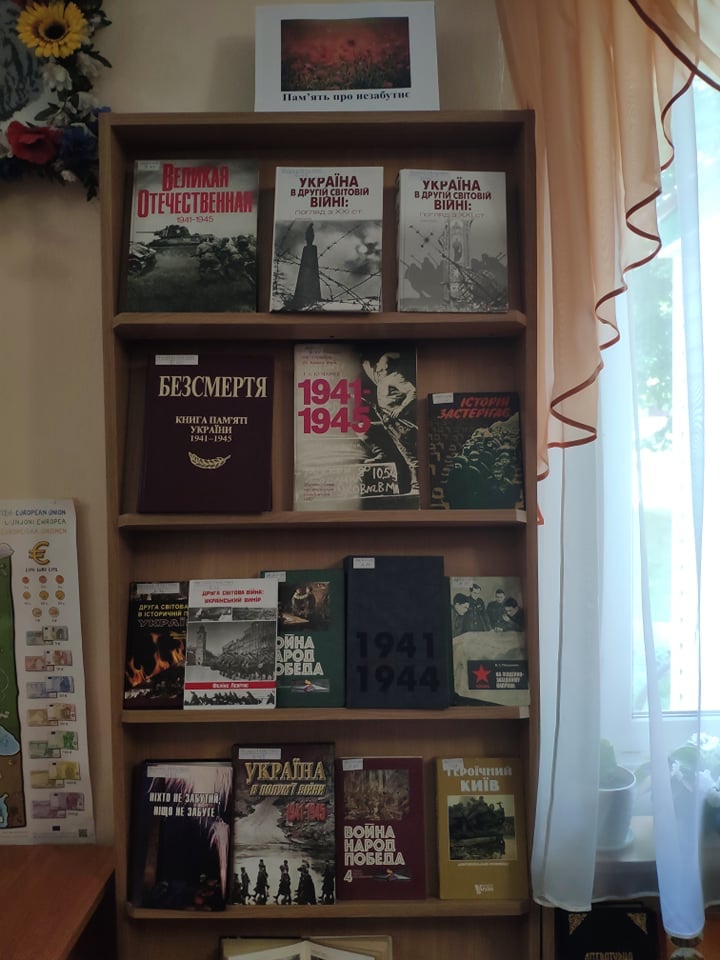 22 червня День скорботи і вшанування пам’яті жертв війни в Україні. В читальній залі відділу обслуговування користувачів Публічної бібліотеки Клеванської селищної ради розгорнуто книжкову виставку “Пам’ять про незабутнє”, як документальний спомин та вшанування пам’яті загиблим в 1941-1945 роки.