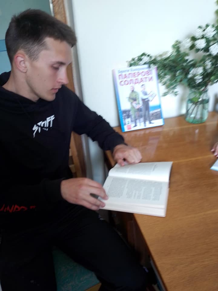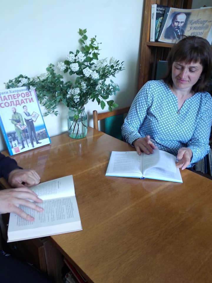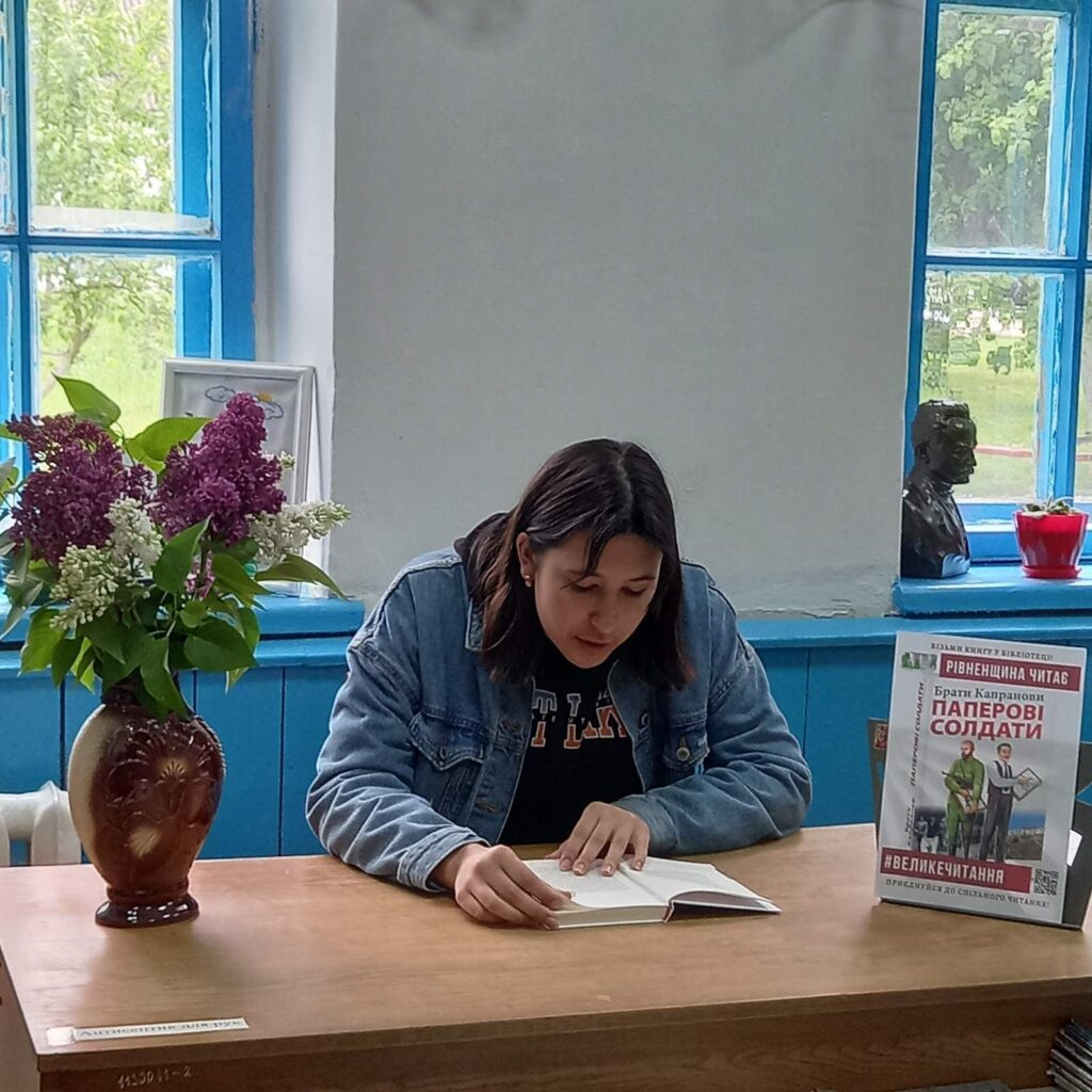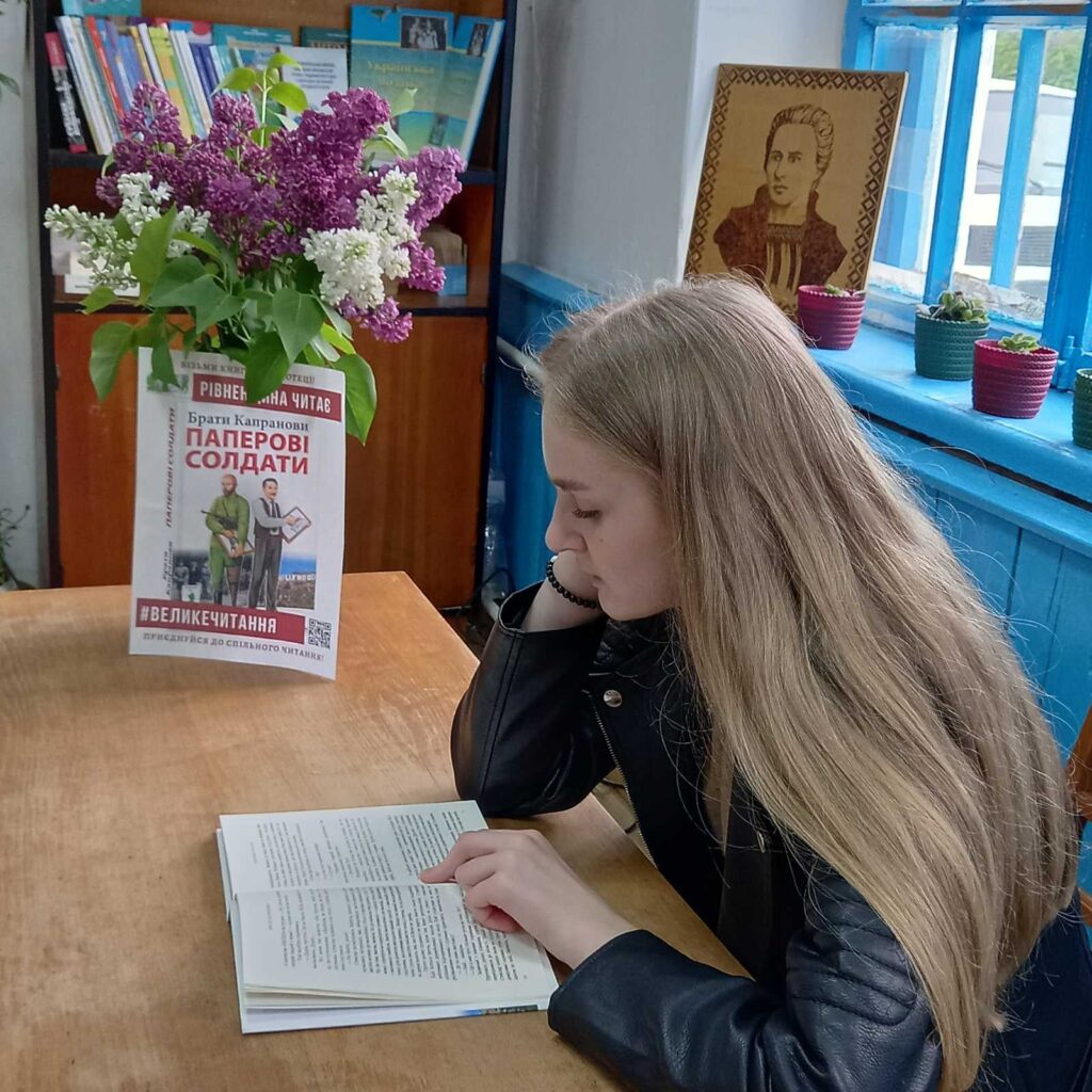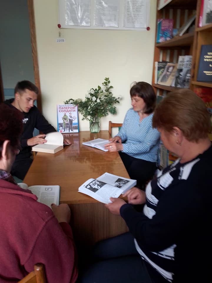 Працівники відділу обслуговування користувачів смт Клевань Публічної бібліотеки Клеванської селищної ради та бібліотеки Клеванського ліцею N1 долучились до спільного читання книги братів Капранових “Паперові солдати”, провівши голосні читання.
