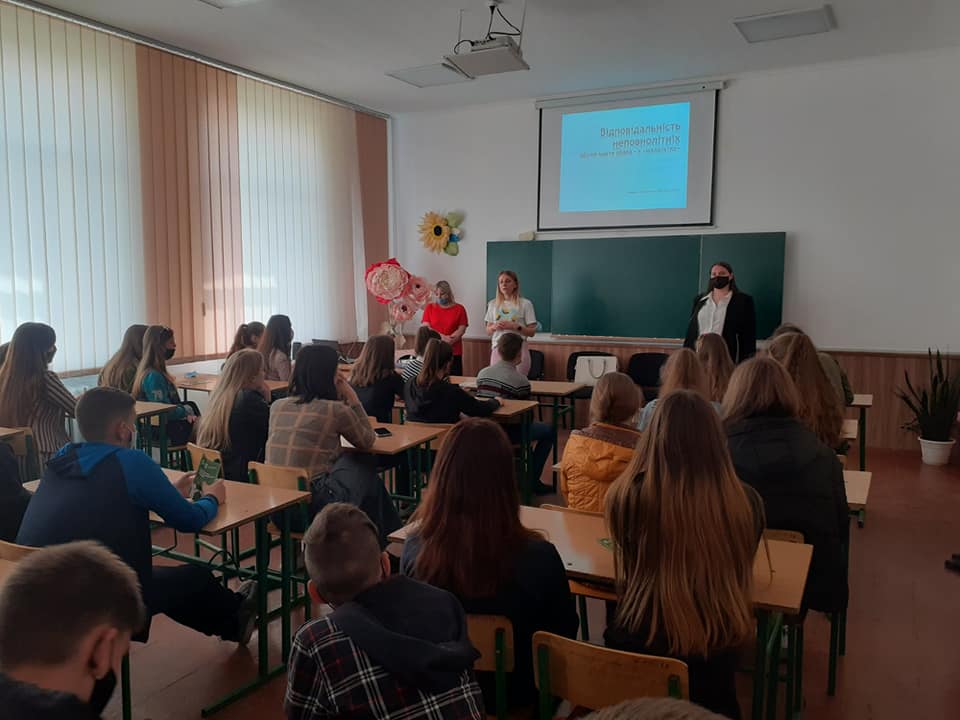 Під час зустрічі з волонтерами у навчальних закладах школярів було проінформовано про те, що таке вторинна безоплатна правова допомога, яким категоріям населення вона надається та як нею можна скористатися. Зустрічі викликали у школярів старших класів значний інтерес, адже інформація, яку розповіли адвокати, є надзвичайно цінною кожному старшокласнику. Школярі повинні знати, коли, в яких ситуаціях неповнолітнім можна звертатися до центрів та бюро системи безоплатної правової допомоги. Адвокат Тетяна Бідюк цікаво, з прикладами з адвокатської практики, розповіла про особливості усіх видів відповідальності неповнолітніх – цивільної, адміністративної та кримінальної. Надзвичайно цікаво Тетяна Вячеславівна показала на прикладах як діяти не варто, і коли правова допомога повинна бути надана негайно.