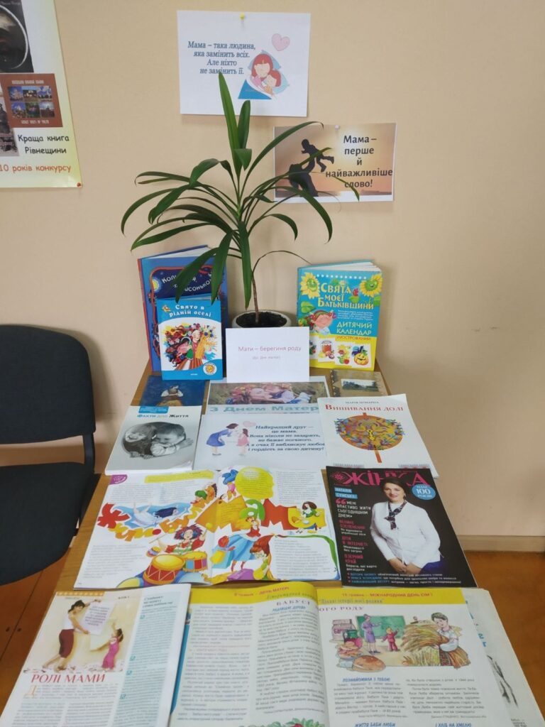 Свято матері – свято любові. Цей день прийшов до нас із забуття, переживши нещадні заборони, й повертає нас душею до давніх традицій, щоб ми вміли проносити крізь усе життя шану до найріднішої людини у світі – мами. Наші матусі – це Берегині роду українського, його прекрасних символів і давніх звичаїв. Вони уберегли від забуття нашу пісню і думу, нашу культуру і волелюбний дух, навчили величати рідну землю, рідний край! На українських теренах День матері святкується від 1929 року. Від 10 травня 1999 року згідно Указу Президента України – це свято стає суспільним торжеством, коли вшановують жінку-матір. В Україні цей день відзначається в другу неділю травня.До міжнародного Дня Матері у відділі обслуговування користувачів смт Оржів Публічної бібліотеки Клеванської селищної ради оформлено книжково-ілюстровану виставку “Мати – берегиня роду”. Запрошуємо до перегляду матеріалів, представлених на виставці.