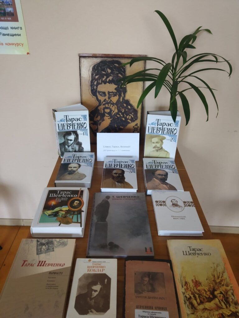 Багато народжувалося в Україні поетів. Але найталановитішим, найулюбленішим між ними був і лишається Тарас Шевченко. Це його “Заповіт” читали студенти на Майдані Незалежності в Києві. Це його вірші стали символом Революції Гідності. З його віршами українські солдати йдуть у бій з ворогом. Ім’я Великого Кобзаря ми згадуєм часто, адже він подарував нам чудові твори, в яких звучить любов до України, турбота про її майбутнє. Хочеться вірити, що на шляху кожного українця завжди будуть Тарасова пристрасть, Тарасова мужність, Тарасове невмируще слово!До річниці Тараса Шевченка в дитячому відділі Публічної бібліотеки Клеванської селищної ради оформлена книжкова виставка “Слідами Тарасової долі”. Оксана Гунько, провідний бібліотекар відділу обслуговування дітей Публічної бібліотеки Клеванської селищної ради.