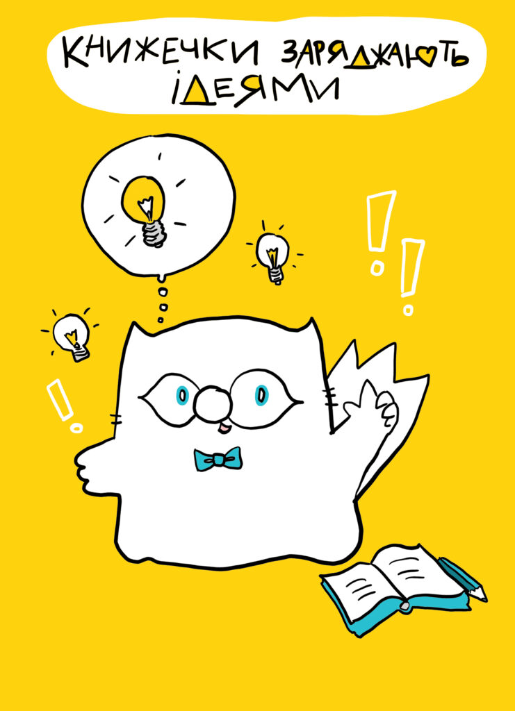 “Пухнастий привіт! Мене звати Кіт Інжир і понад усе я люблю книжечки. Бібліотеки — моє місце сили, бо розум — це сила. Неймовірно ціную працю бібліотекарів. Тож хочу зробити вам приємність цими сірими листопадовими днями й поділитися набором моїх постерів про читання та книжечки. “Щодня ми будемо виставляти по одному постеру. Шукайте за хештегом #бібліотекам_від_кота_інжира