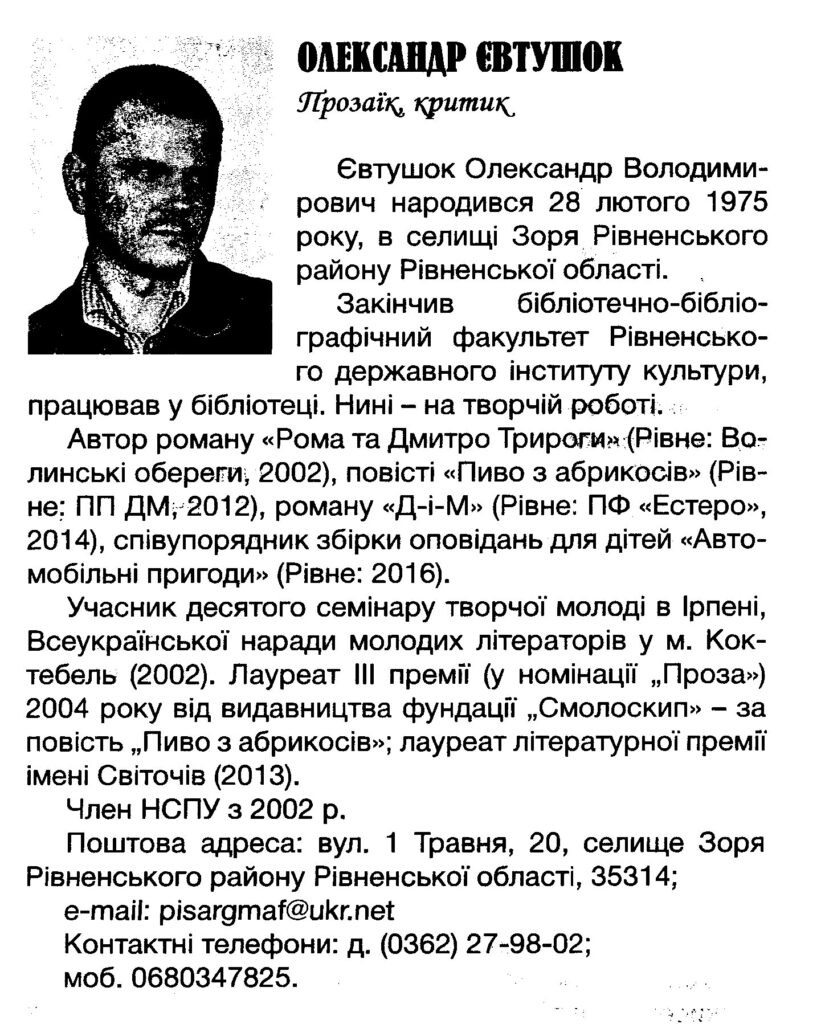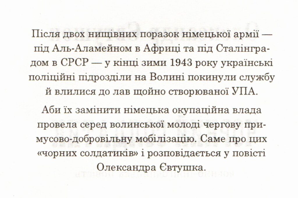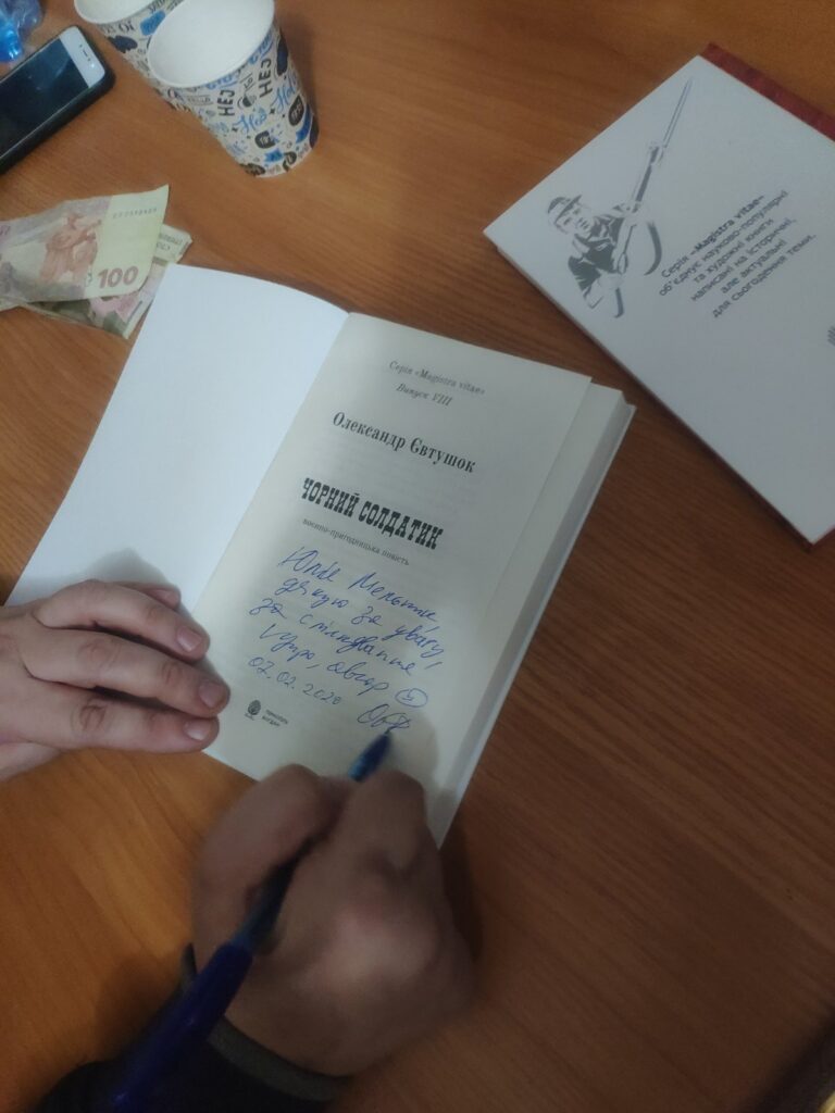 Дослідження свого минулого є дуже важливим у наші часи. Мабуть всі пам`ятають ті моменти, коли, будучи ще дітьми, заслуховувалися оповідками своїх бабусь, дідусів, стареньких сусідів про те, яким було їх дитинство. Тоді, здавалося, все було цікавим та зрозумілим. Але коли дитина дорослішала у неї з`являлося безліч запитань, відповіді на які вона хотіла отримати. Разом з тим, виникає величезне бажання дізнатися більше про свій рід: намалювати родове дерево та ретельно вивчити його коріння і розібратися, що ж сталося свого часу з тим чи іншим членом родини. Чому сім`ї твоїх бабусь і дідусів були вислані до Сибіру, що сталося з тіткою бабці, якої вона більше ніколи не бачила, і чому саме в тебе є тяга до письменства та вивчення свого роду – можливо хтось, колись із твоїх рідних був таким як ти. Про це варто замислюватися, тому ми й повертаємося до вивчення роду, історії та краєзнавства, аби краще зрозуміти минуле. Вивченням історії нашого краю займається багато дослідників. Одним із них є Олександр Євтушок – член Національної спілки письменників України, який народився 28 лютого 1975 року в селі Зоря, Рівненського району, Рівненської області. Закінчив бібліотечно-бібліографічний факультет Рівненського державного інституту культури, був працівником бібліотеки, що і стало поштовхом до захоплення збору та сортування важливої інформації. З під його пера вийшли наступні твори: «Роман та Дмитро Трироги» 2002 року, повість «Пиво з абрикосів» 2012 року та роман «Д-і-М» 2014 року. У літературно-краєзнавчому журналі Рівненщини «Погорина» надрукована його «Повість для домашнього вогнища». Олександр Євтушок є лауреатом 3-ї премії літературного конкурсу для молоді «Смолоскип» у 2004 році, нагороджений обласною премією імені Світочів, став переможцем конкурсу «Книга Рівненщини» у номінації «Краще видання для юнацтва та молоді», за повість «Пиво з абрикосів» 2013 року, переможець конкурсу “Книга Рівненщини” у номінації “Краще видання для юнацтва та молоді” за книгу “Д-і-М” 2016 року. На сьогоднішній день Олександр Євтушок є редактором газети «Зоря ІНФО», дослідником-краєзнавцем, талановитим письменником та мудрим порадником для творчої молоді. Днями в приміщенні відділу обслуговування користувачів Публічної бібліотеки Клеванської селищної ради відбулася презентація його книги «Чорний солдатик» тернопільського видавництва «Богдан», яка вийшла друком в 2019 році. Над своєю книгою Олександр Євтушок працював довгих 17 років. Для її написання від ретельно відшуковував інформацію в архівах, спілкувався з очевидцями та багато читав, шукаючи інформацію у багатотомному виданні «Літопис УПА». У книзі йдеться про те, як в кінці зими 1943 року українські поліційні підрозділи на Волині покинули службу й влилися до лав щойно створюваної Української повстанської армії. Аби їх замінити німецька окупаційна влада провела серед волинської молоді чергову примусово-добровільну мобілізацію. Саме про цих «чорних солдатиків» і розповідається у повісті Олександра Євтушка. Разом з тим автор підкреслив, що працюючи над книгою він хотів дослідити долю свого рідного дядька та історію селища Клевань в далекі воєнні роки. На захід завітало багато жителів Клеванської об’єднаної територіальної громади, зокрема: начальник відділу освіти культури туризму молоді та спорту Кле