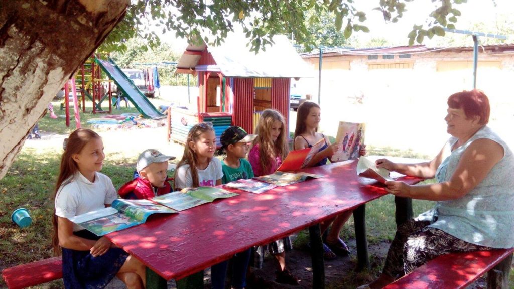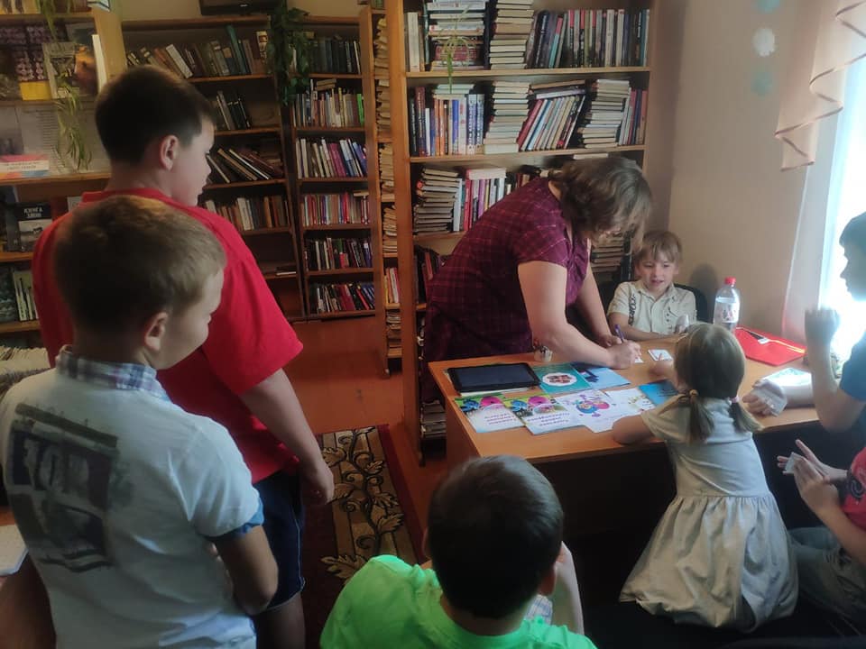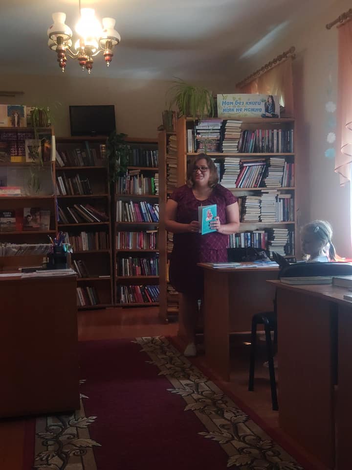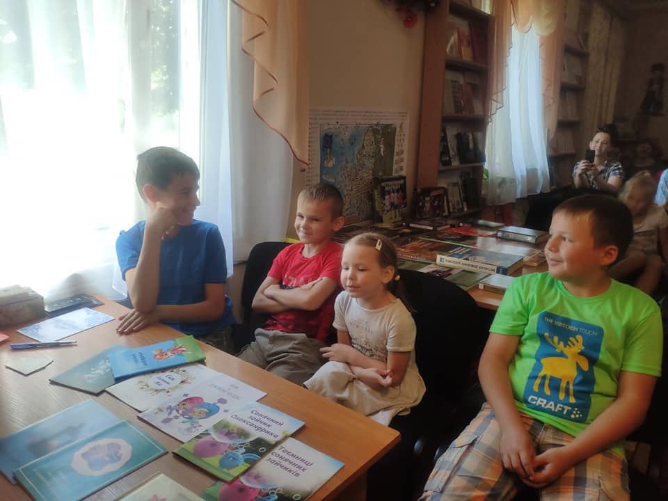 Дуже приємно, що не зважаючи на літню пору: період масових відпусток, відпочинку на березі моря та захоплюючих подорожей рідною країною – на захід до бібліотеки завітало багато гостей, серед яких батьки та діти нашої громади. Малята із задоволенням слухали цікаві казки: “Зозулястий легіт”, “Казку про котика, який жив на хмарці”, “Таємниці сонячних зайчиків”, віршовану казочку “Про саламандру, яка мріяла про мандри” і надзвичайно всім сподобався “Вірш про маму”. А ще на діток чекав сюрприз: вони прийняли участь у створенні особливої історії – це була захоплива гра, результатом якої буде нова казка від Надії Малафєєвської.