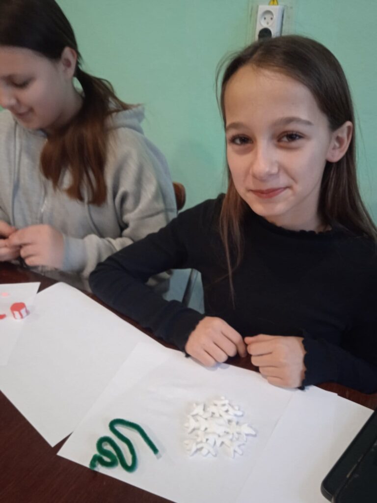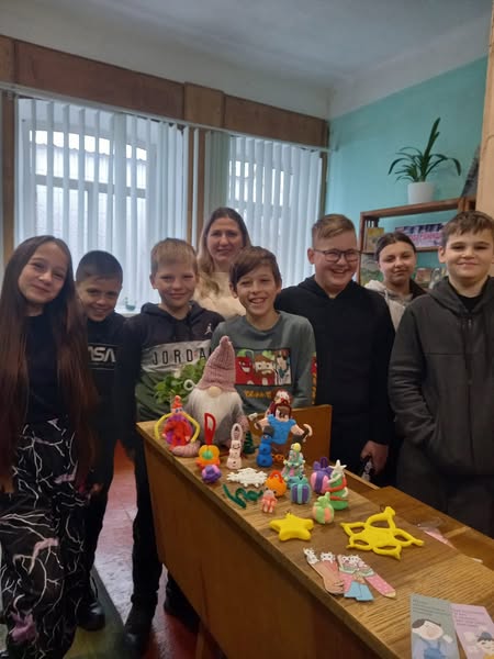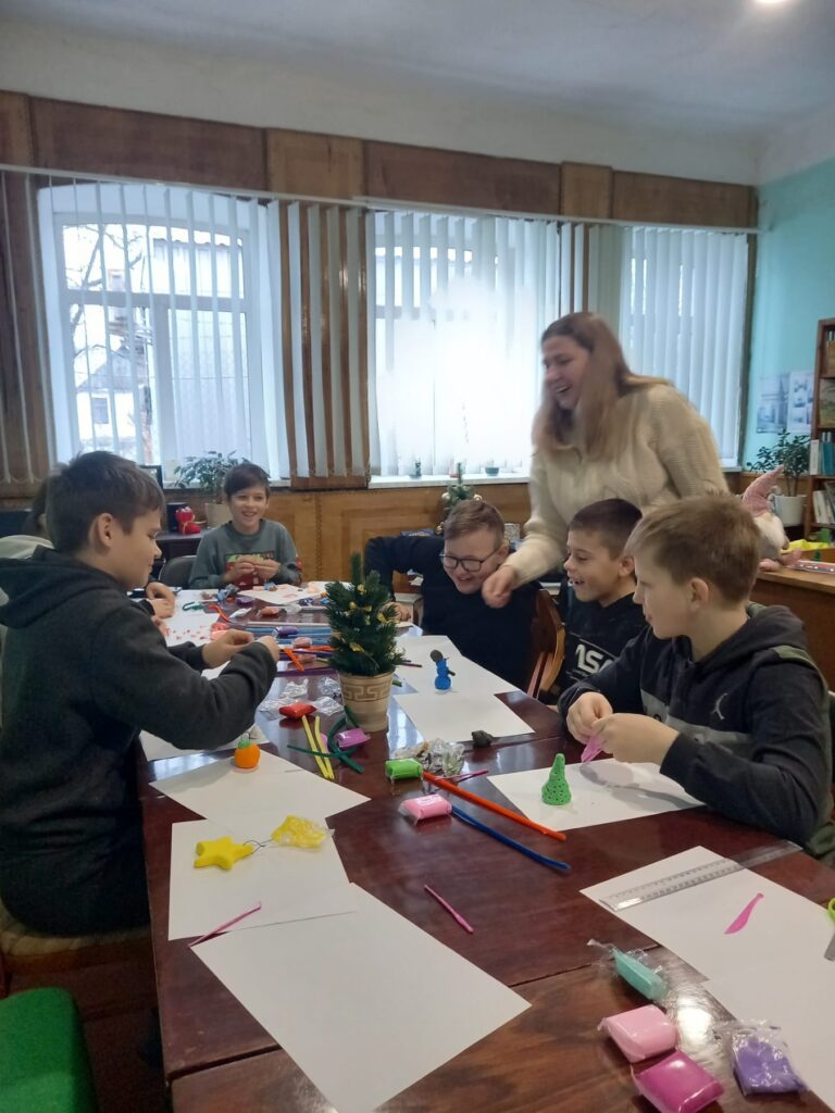 За вікном пролітає сніг. В приміщенні тепло та затишно, у грубці палахкотить вогонь, а довкола лунають веселі дитячі голоси та сміх. Сьогодні у бібліотеці-філії селища Клевань пройшов майстер-клас з виготовлення новорічних прикрас “Краса своїми руками”. На майстерку завітали учні 7-А класу Клеванського ліцею#1 та їх класний керівник, вчитель української мови та літератури – Ніна Романова.Дякуємо за позитив та чудові ідеї!
