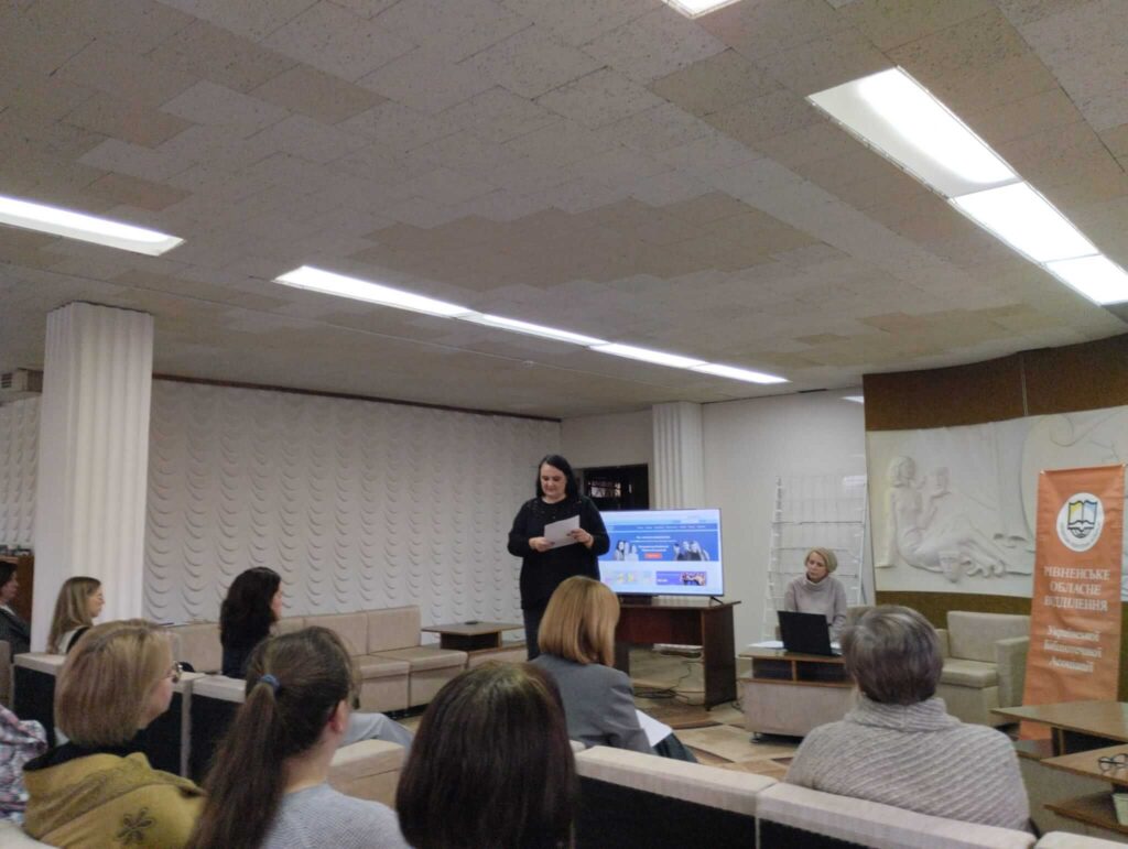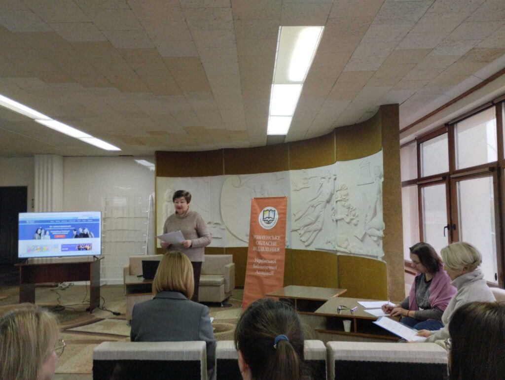 Членкиня Президії Наталія Назарук зупинилася на проєктно-грантовій діяльності бібліотек та ролі ГО «РОВ УБА» у підтримці суспільно-корисних ініціатив, зазначила, що: -за три роки було підтримано 14 бібліотечних проєктів; – проведено конкурс «Культурний патрон громади», у якому статус звання отримали голови Привільненської, Бугринської та Білокриницької ТГ, за вдалу адвокаційну роботу відзначено бібліотекарів цих громад; – конкурс «Краща сільська бібліотека» (2023 р.) у якому кращою визнано КЗ «Привільненська публічна бібліотека» Привільненської СР.Членкиня Президії Вікторія Гупалюк представила відомості про кількість дійсних членів ГО «РОВ УБА» у розрізі ТГ, відзначила активні бібліотечні спільноти громад.