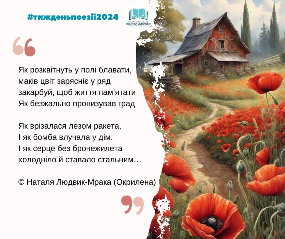 Сьогодні, у єдності, ми доносимо до сердець мешканців нашої громади, що міць поетичного слова додає сили боротися проти ворога та зміцнює нашу віру в перемогу.