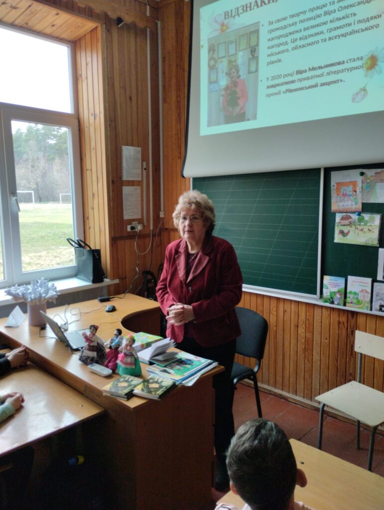 21 березня 2024 року з нагоди Всесвітнього дня поезії в Клеванський ліцей 1 відбулася творча зустріч з Вірою Мельниковою Vera G Melnikova , рівненською письменницею – членкинею Національної спілки письменників України та Національної спілки журналістів України, філологинею та громадською діячкою. Під час зустрічі учням 5-го, 6-А та 6-Б класів було презентовано нову поетичну збірку авторки “Незникла ниточка любові”, а також дитячі видання “Край мій рідний – Україна” та “Андрійкова робота”. Віра Олександрівна розказала дітям передісторію створення книги, розповіла про людей, які допомагали їй у цій важливій справі, зачитала власні поезії, живо та активно спілкувалася з учнями, а також представила їм свої власні ексклюзивні вироби – рукотворні лялечки. Про життєвий і творчий шлях авторки, творчі здобутки та ТОП-5 захоплень Віри Мельникової шкільній авдиторії розповіла Ірина Громик , директор комунального закладу “Публічна бібліотека” Клеванської селищної ради. Ми безмежно дякуємо директору Клеванського ліцею №1 Світлані Фінчук Lana Finch та вчителю української мови та літератури Ніні Романовій Ніна Романова за плідну співпрацю та сприяння у проведенні заходів, що стають промоцією української літератури та друкованого слова, знайомлять юних читачів з творчими іменами Рівненщини та України. #тижденьпоезії2024 #Всесвітній_день_поезії