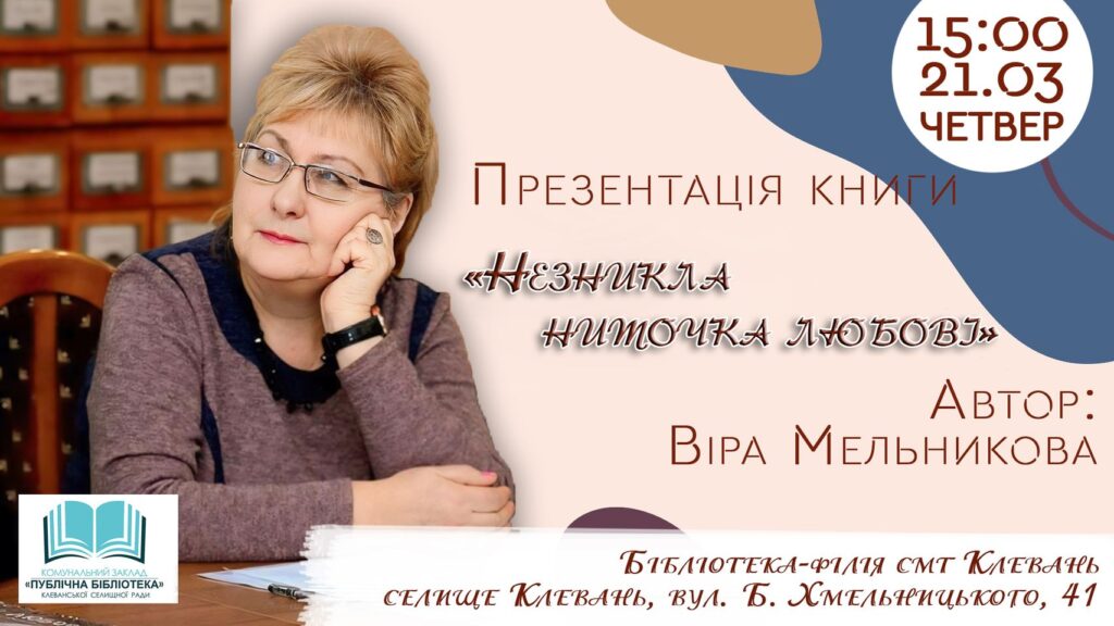 Запрошуємо користувачів бібліотеки-філії смт Клевань комунального закладу “Публічна бібліотека” Клеванської селищної ради, що знаходиться за адресою: селище Клевань, вул. Хмельницького Б., буд. 41, ознайомитися з оновленим бібліотечним фондом. Видача книг відбувається за попереднім записом користувача до бібліотеки.