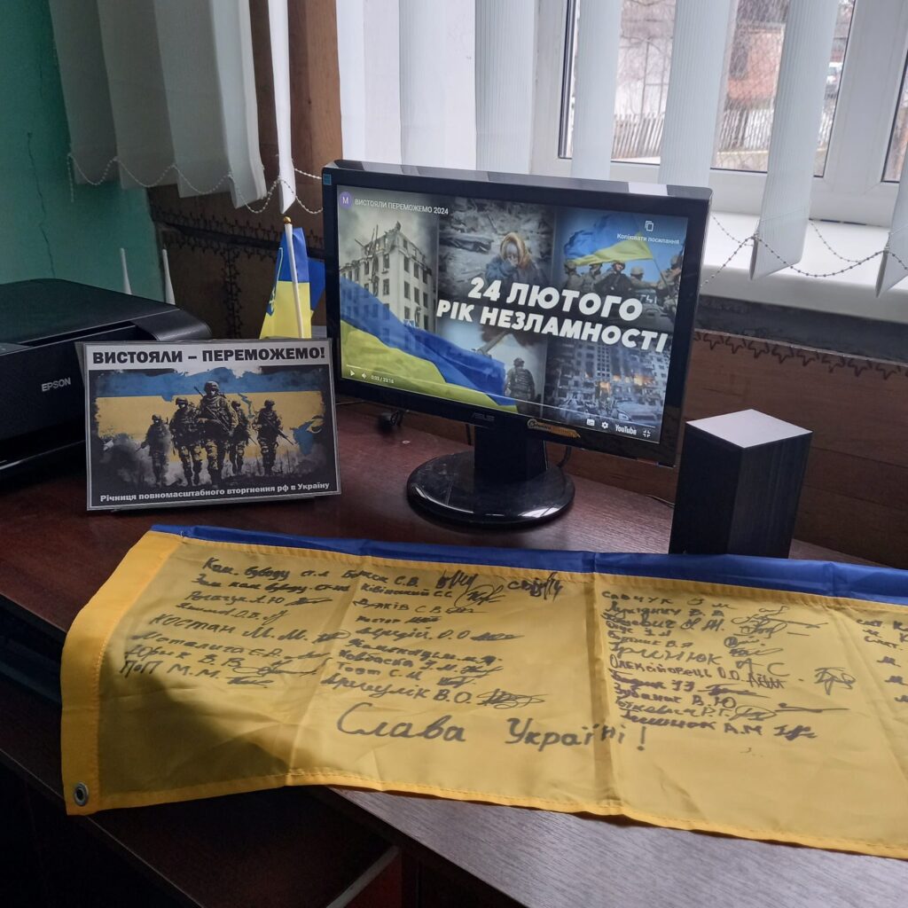 Річниця повномасштабного вторгнення рф в Україну… 24 лютого 2022 року – день, навічно вкарбований в історію України. Це день, який розділив життя українців на “до” та “після”.У бібліотеці-філії смт Клевань Комунальний заклад “Публічна бібліотека” Клеванської селищної ради підготовлено інормаційні матеріали “Вистояли – переможемо!!!”, а музейна кімната “Краєзнавчі сторінки” бібліотеки-філії поповнилася дорогоцінним експонатом – ПРАПОРОМ УКРАЇНИ ІЗ ПІДПИСАМИ ЇЇ ЗАХИСНИКІВ. Молимося за них та допомагаймо!!! #бібліотека_на_вулиці_Хмельницького