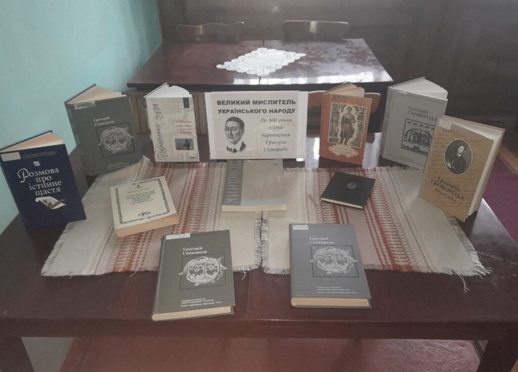 До 300-річччя з Дня народження Г. Сковороди у відділі обслуговування користувачів смт Клевань КЗ «Публічна бібліотека» Клеванської селищної ради оформили книжкову виставку-перегляд «Великий мислитель українського народу», переглянувши яку можна познайомитися з книгами поета: Г. Сковорода «Вибрані твори», «Вибрані твори в українських перекладах», «Байки», «Розмови про істинне щастя», «Сад пісень» та інші.
