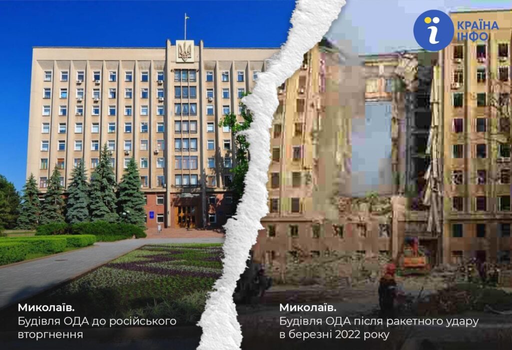 Миколаїв: Сильний та мужній сім місяців він протистоїть російській навалі. За цей час в місті зруйновано низку навчальних закладів, лікувальних установ, житлових будинків. Наприкінці березня окупанти вдарили по будівлі Обласної держадміністрації, загинули 35 людей. Тепер у серці міста величезна діра, сповнена болем і скорботою.