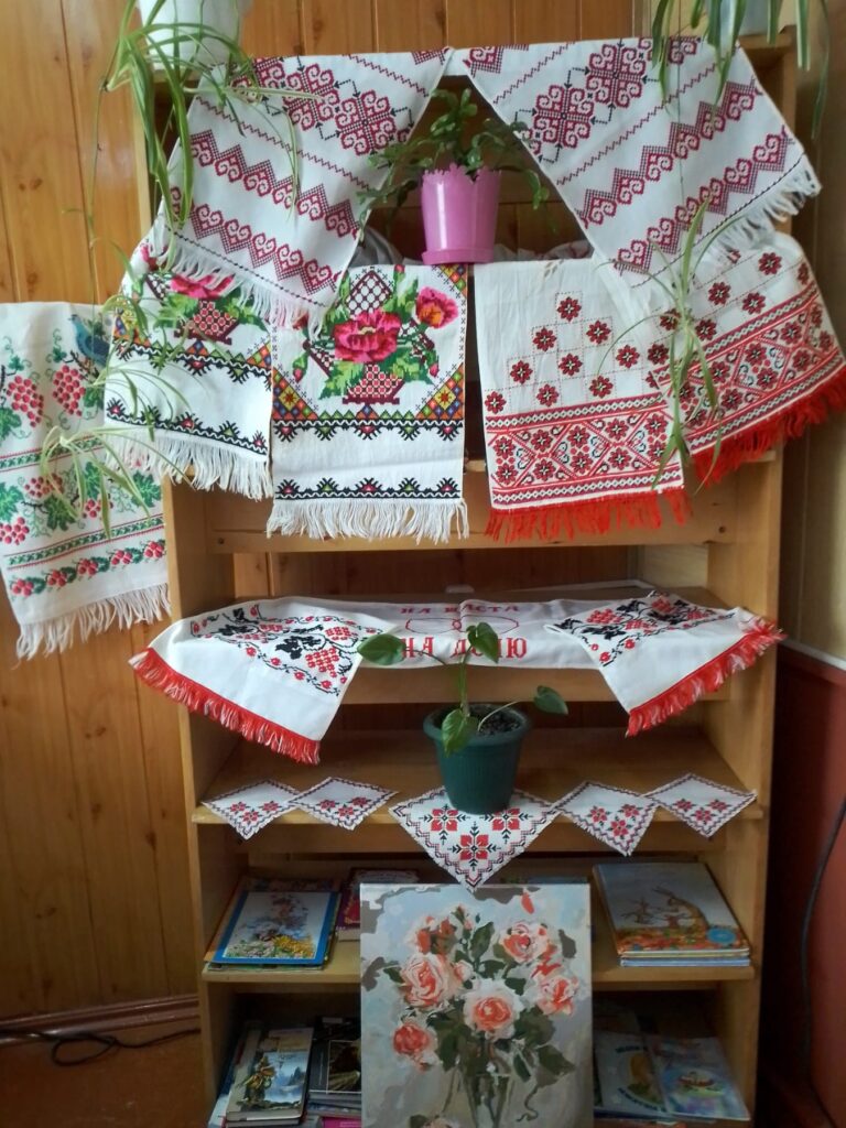 Вишитий рушник, оберіг нашої України та українського народу. До Дня вишиванки у відділі обслуговування користувачів с. Жобрин розгорнуто виставку вишитих робіт.
