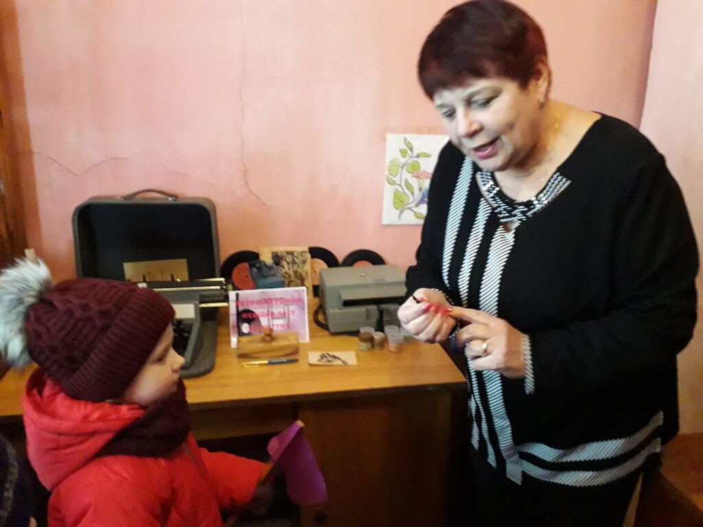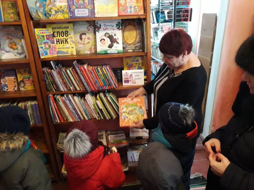 У приміщенні бібліотеки на дітей чекала провідний бібліотекар Наталія Жиденко, яка завжди щиро рада своїм відвідувачам. Мета екскурсії – поглибити знання дітей про бібліотеку, виховувати інтерес до книжок, дбайливе ставлення до них. Бібліотекар ознайомила присутніх з книжковим фондом бібліотеки, новинками дитячої літератури з правилами користування бібліотекою. Цікавими для дітей були експонати, які розміщені в ретро-куточку «Свідки часу та життя». Разом з тим приємною забавкою для малечі були розмальовки. По завершенню екскурсії бібліотекар подарувала усім відвідувачам яскраві книжечки.