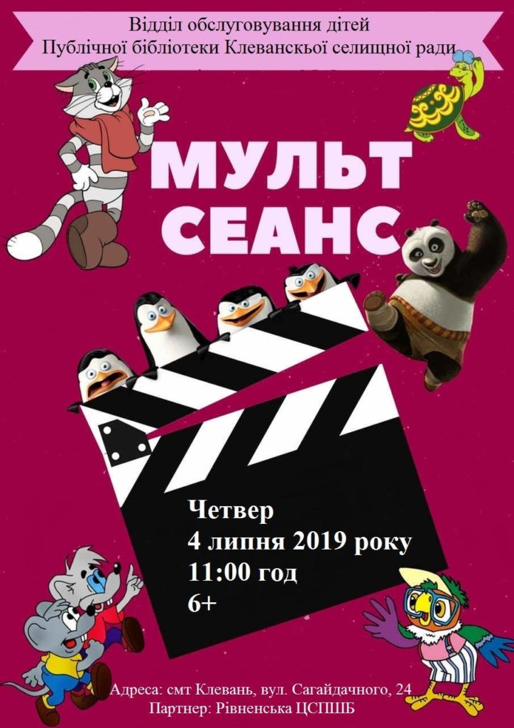 Сьогодні у відділі обслуговування дітей Публічної бібліотеки Клеванської селищної ради пройшов перший мультсеанс, на якому діти отримали масу приємних емоцій від перегляду мультиплікаційного фільму.