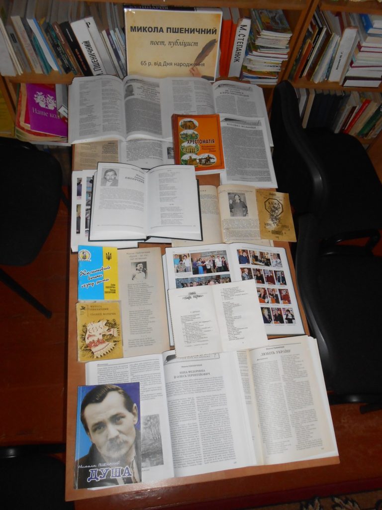 До 65-ї річниці від Дня народження відомого письменника, публіциста, краєзнавства, громадського діяча Рівненщини Миколи Івановича Пшеничного у читальному залі відділу обслуговування Публічної бібліотеки Клеванської селищної ради розгорнуто літературний портрет – оформлено книжково-ілюстративну виставку та проведено літературний огляд “Микола Пшеничний – поет, публіцист”.